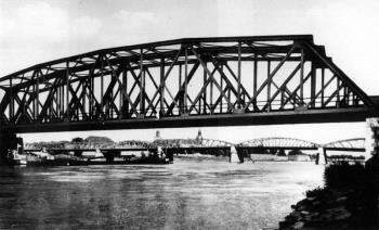 28.03.1945 - Około godziny 21:00-22:00 zostały wysadzone przez Niemców mosty na rz. Odrze łączące starą część miasta z Kietz.