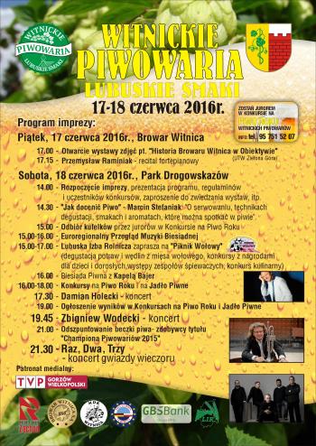 Burmistrz Witnicy Dariusz Jaworski zaprasza wszystkich mieszkańców regionu na witnickie Piwowaria. Święto miasta rozpocznie się już w piątek 17 czerwca w Browarze Witnica, który wspólnie z Gminą organizuje Piwowaria. O godz. 17.00 zostanie otwarta wystawa ,,Historia Browaru Witnica w obiektywie'', przygotowana przez Uniwersytet Trzeciego Wieku w Zielonej Górze. Następnie z recitalem fortepianowym wystąpi Przemysław Raminiak, muzyk jazzowy o europejskiej renomie, pochodzący z Gorzowa. Będzie też możliwość bezpłatnego zwiedzenia Browaru Witnica.